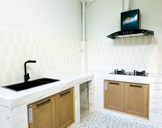 -เคาน์เตอร์ครัวพร้อมเตาแก๊สแบบฝัง+ซิงค์ล้างจาน+ฮูดดูดควัน